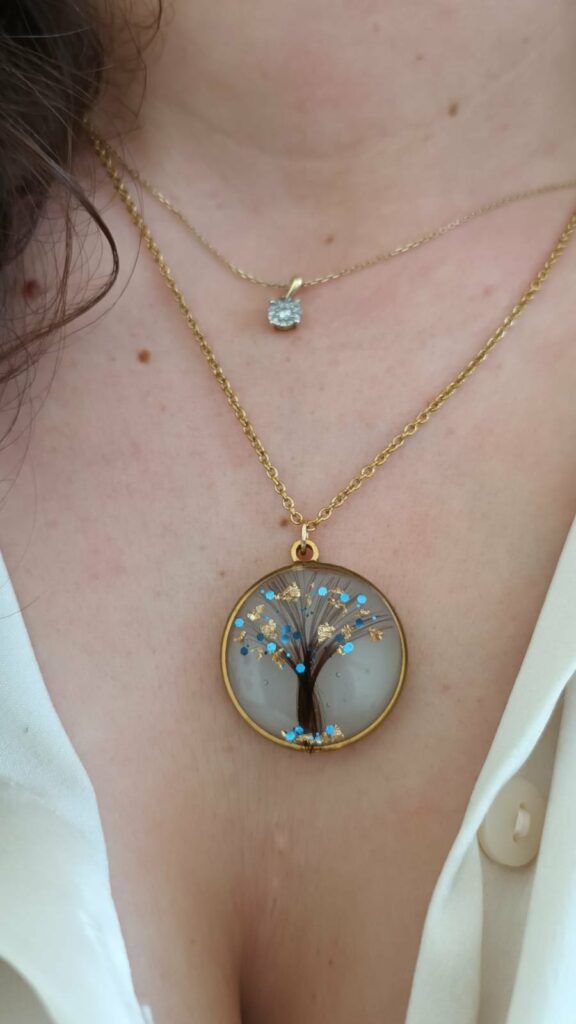 Vous choisissez le modèle — bague, pendentif, bracelet ou boucles d’oreille — et vous transformez votre lait maternel en un souvenir tangible de votre aventure lactée. Vous pouvez également y ajouter quelques mèches de cheveux de votre enfant.